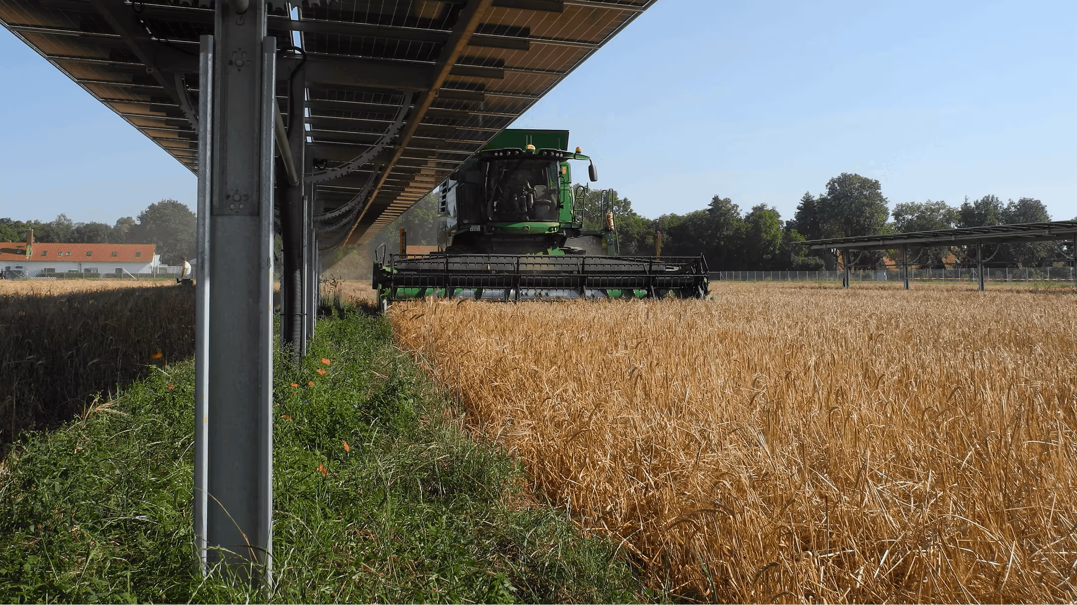 Selbstverständlich bringt der Aufbau einer Agri-PV-Anlage gewisse Einschränkungen für die Bearbeitung des Feldes mit sich. Diese sind jedoch aufgrund der individuell auf Ihre Bedürfnisse abgestimmten Reihenabstände (i.d.R. 11-14 m; auch größer möglich), die an die Größe der Maschinen angepasst werden können, überschaubar. Zudem bleibt das Vorgewende erhalten mit einer Breite, die individuell mit Ihnen abgestimmt wird.